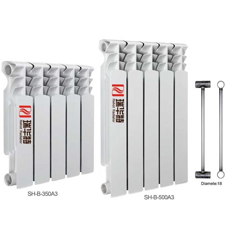 鋼鋁復合暖氣片:分水管及散熱管采用低碳鋼管,散熱翼為優(yōu)質鋁型材。山東散熱器品牌瑞華特自動螺旋脹管工藝確保脹管無間隙,焊接設備及技術保證焊接強度高,承壓能力強。